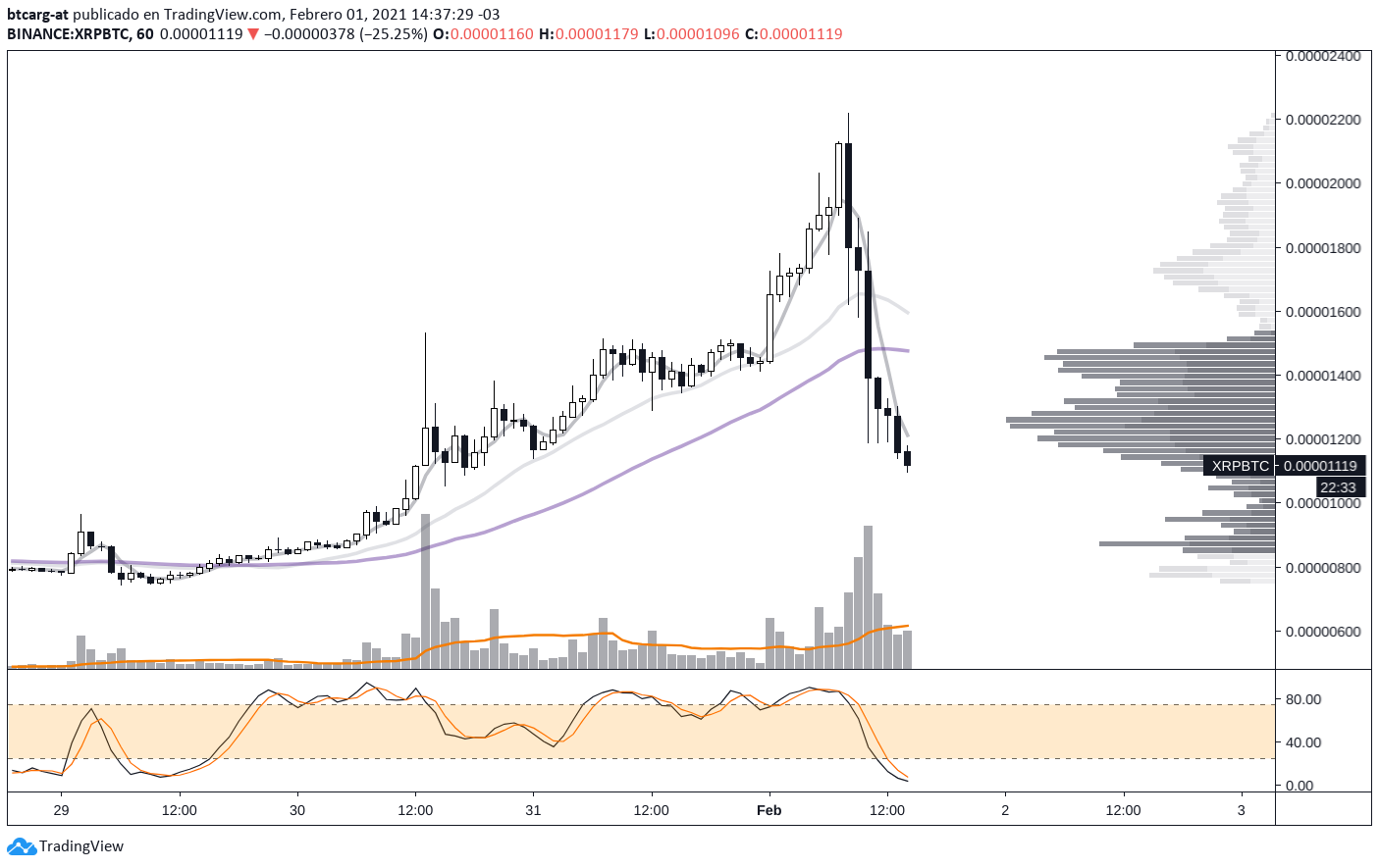 Aparentemente se iba a dar el pump a las 10:30 hs en Argentina (tercera vela negra desde el máximo en los 2200 satoshis). PrimeXBT va a delistar XRP el 10/02.