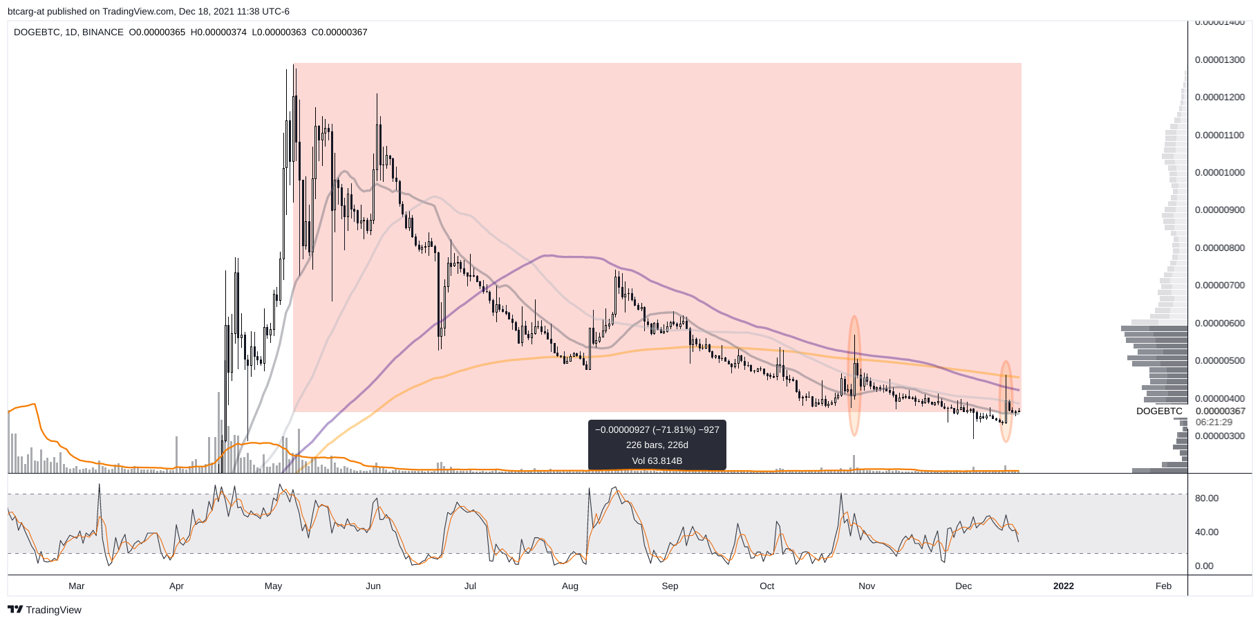 Este esquema, que ya vimos realizarse en julio del 2020, se puede repetir algunas veces más… Pero tarde o temprano, quien/es tiene/n el 75% de DOGE, van a cambiarlos por BTC o USD.