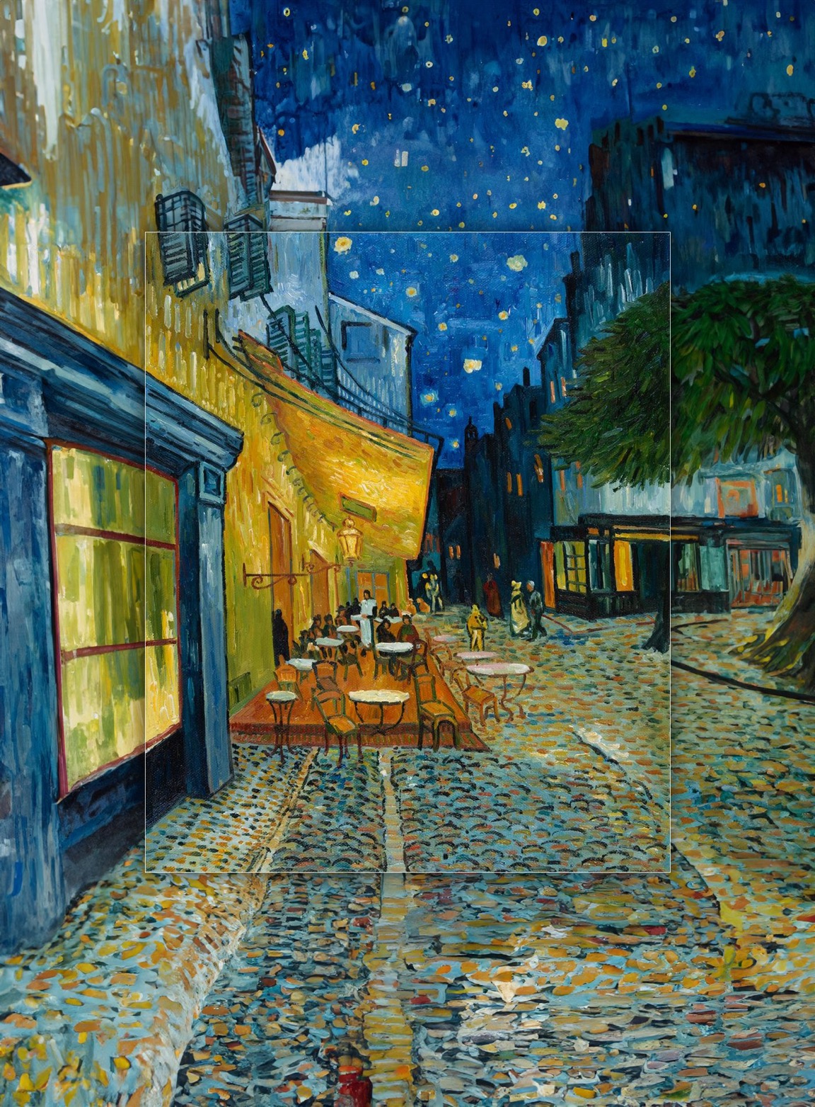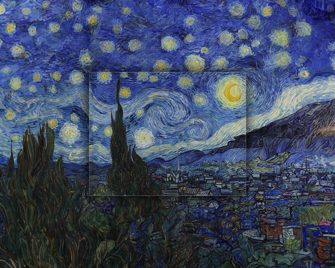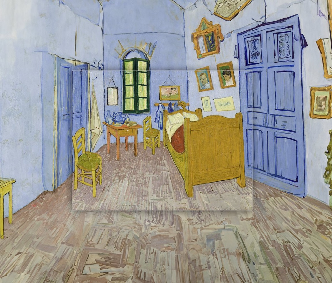 El recuadro gris es la obra original y lo demás es creación de AI.