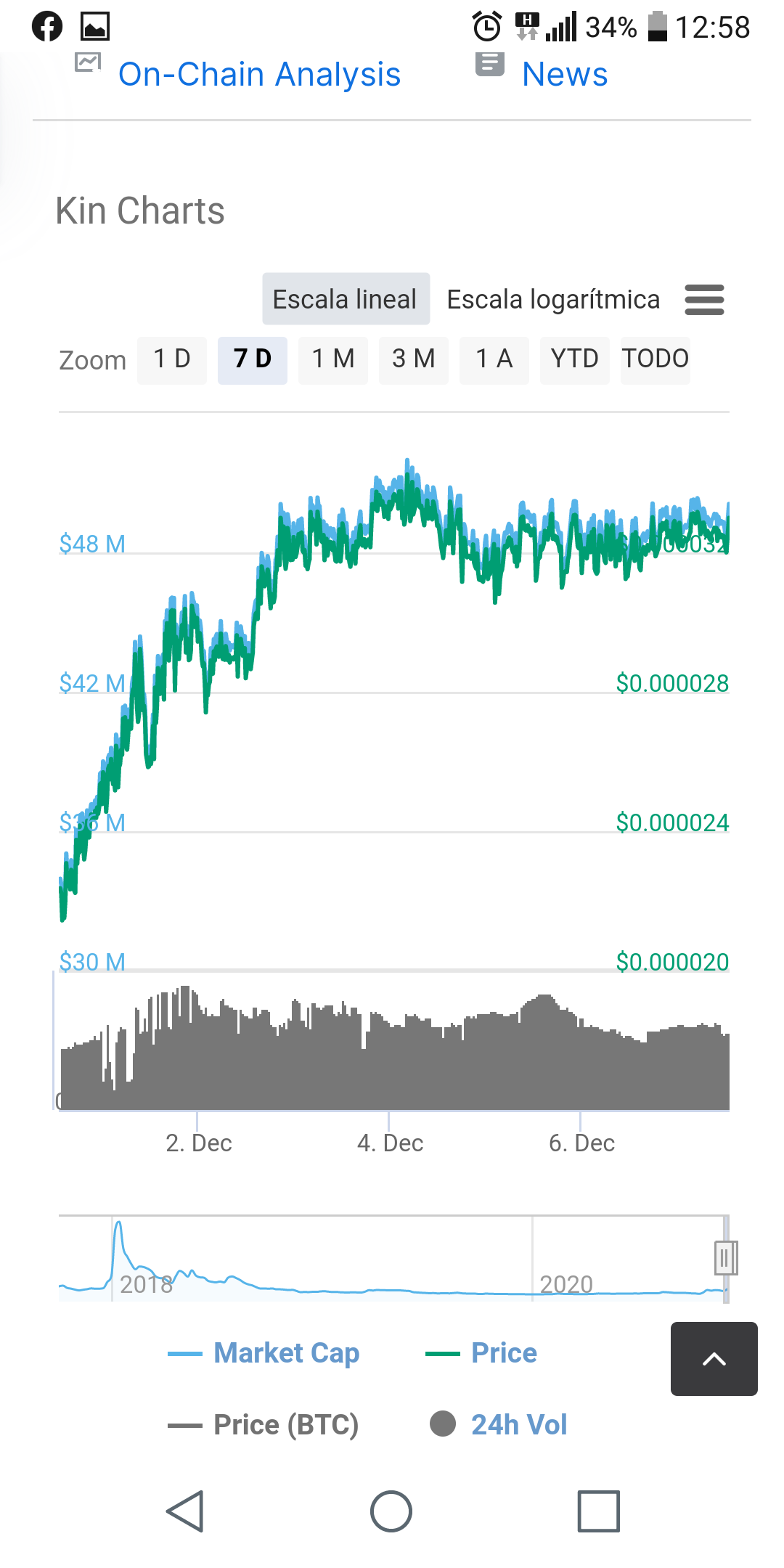Observando las listas de “monedas” y su evolución, encuentro esta KIN que es muy barata, según su gráfico, está cerca de sus precios máximos, no se si será momento de entrar, tampoco conozco proyección a futuro.