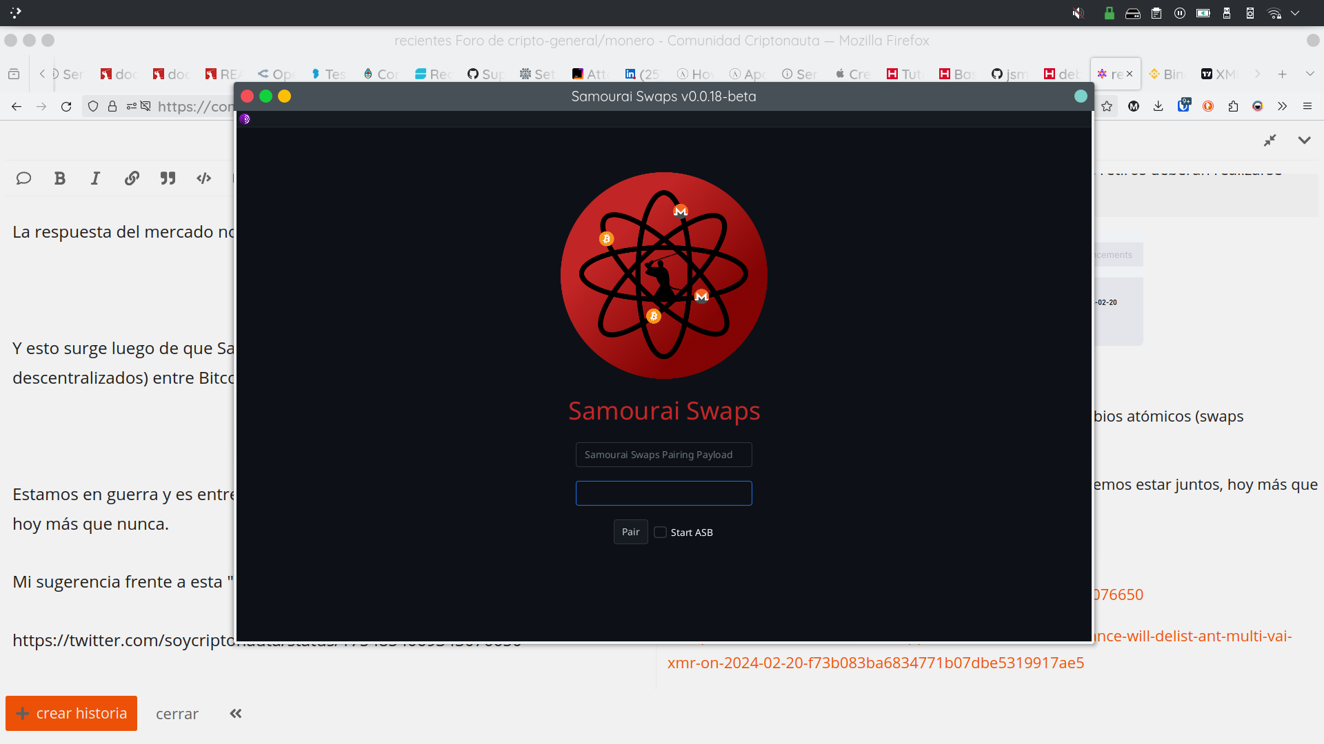 Y esto llega luego de que Samourai Wallet publicó swaps descentralizados entre BTC y XMR