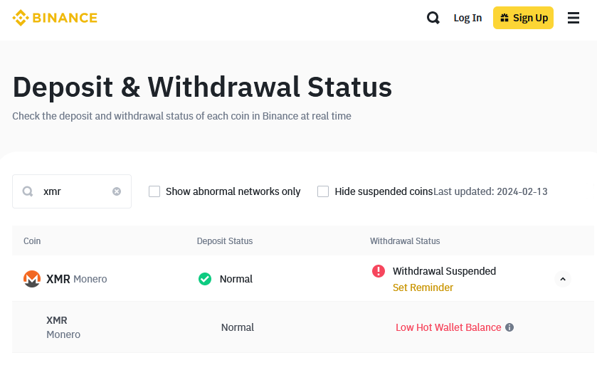 Binance delistará a Monero (XMR) de su plataforma y los retiros deberán realizarse ANTES del 20/02.