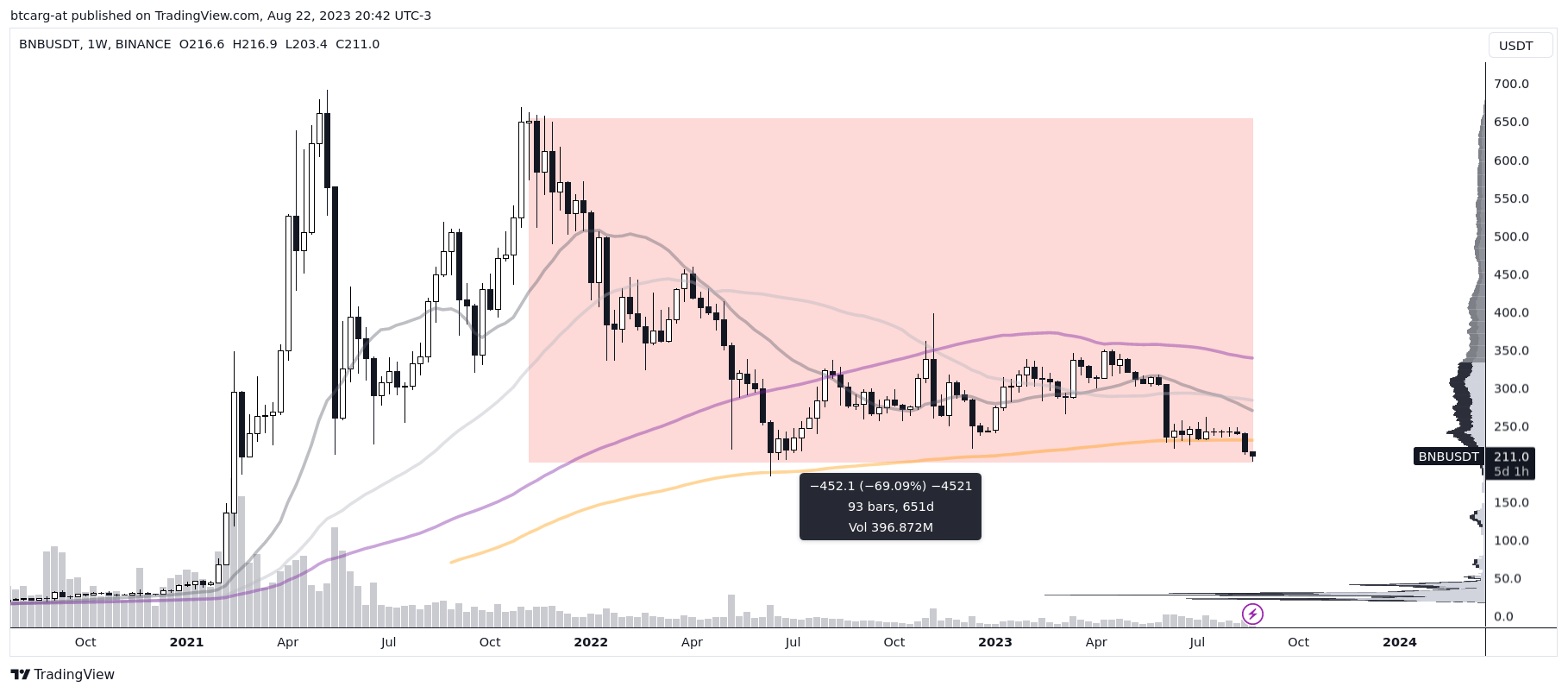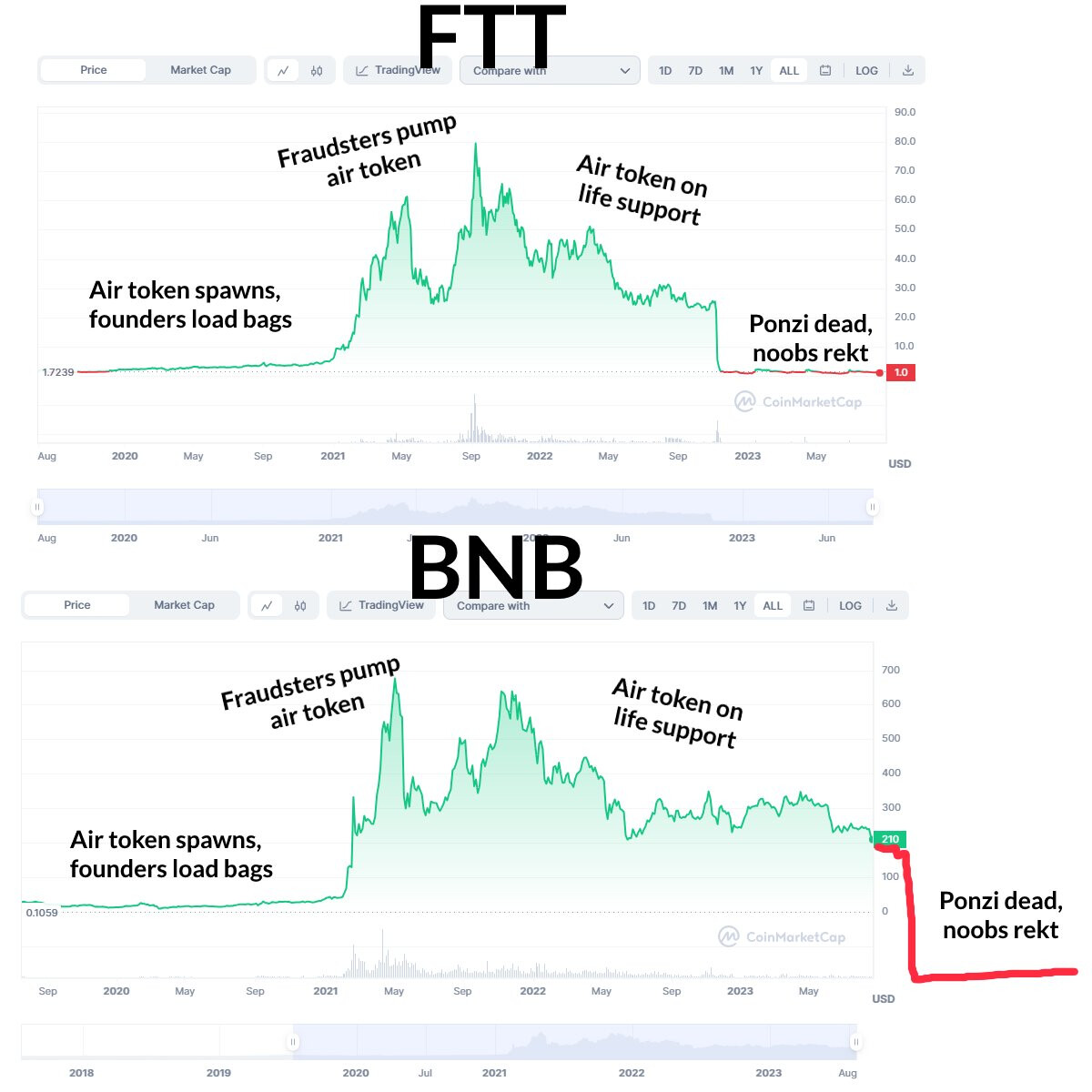 Si BNB pierde el nivel de precios actual, no habrá quien quiera BNB tokens y se producirán liquidaciones en cascada (reventando préstamos y básicamente Binance).