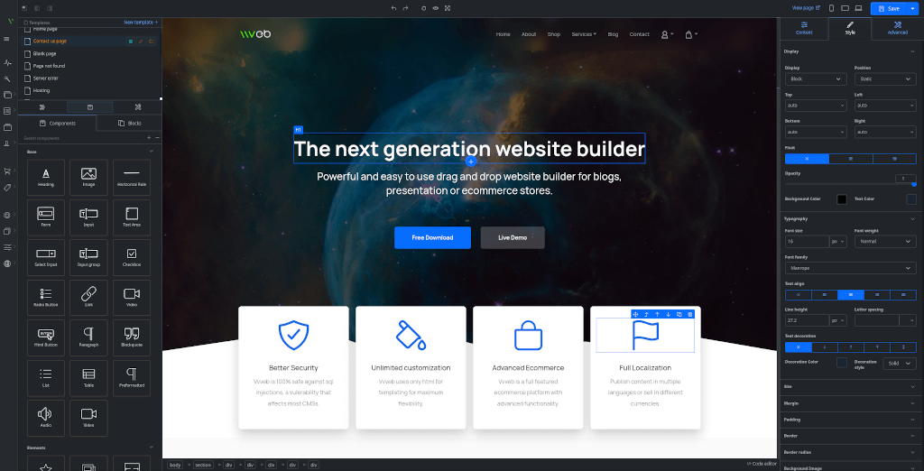 VvvwebJs es un proyecto similar, no tan pulido, pero open-source, con un enfoque distinto pero a la vez muy simple e intuitivo, para generar webs estáticas en un par de clicks.