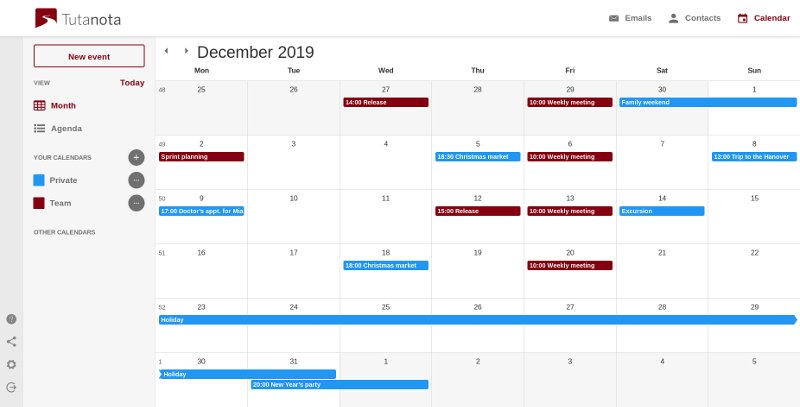 2. Tutanota Calendar (uso personal + cliente de email)