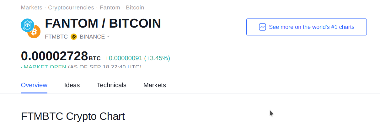 Buscamos el precio de FTMBTC en TradingView: