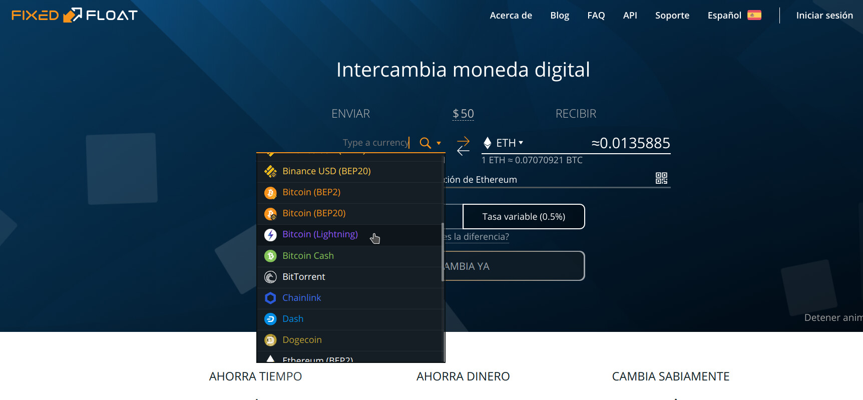- El cambio desde BTC siempre es más económico.