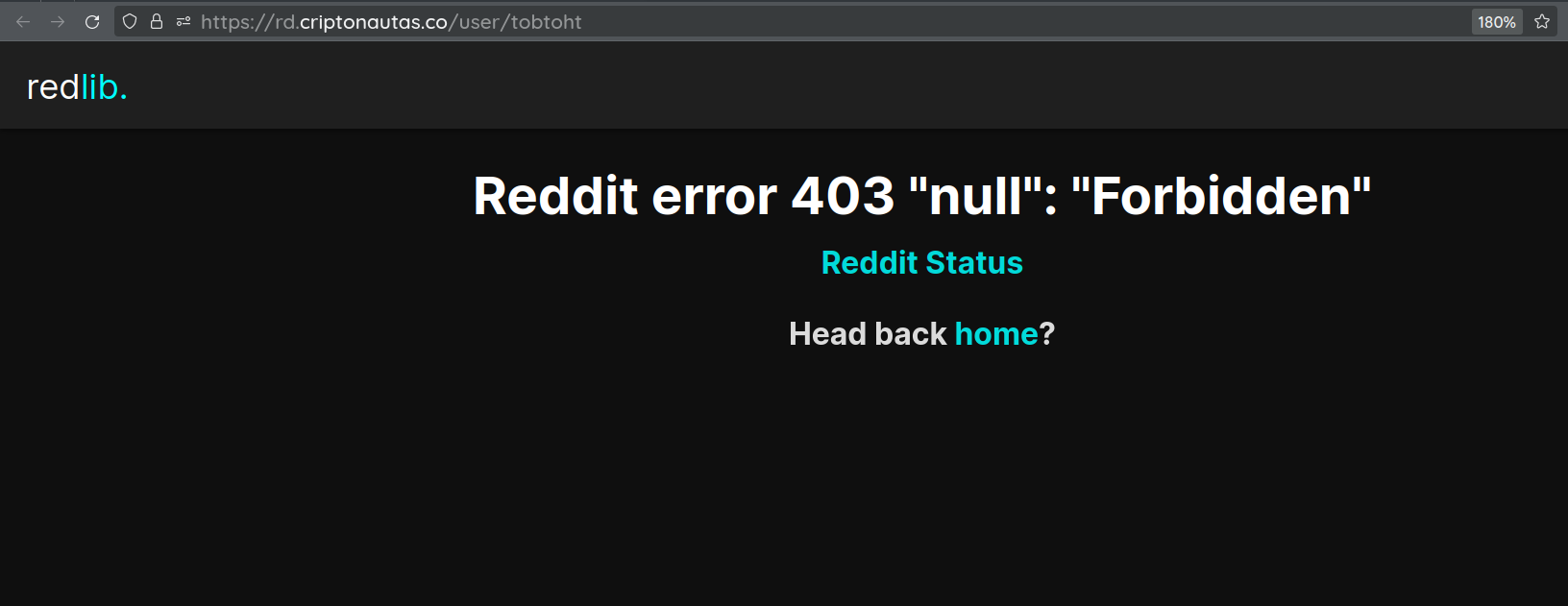 Y al intentar buscar a su creador en Reddit, vemos que está dado de baja: