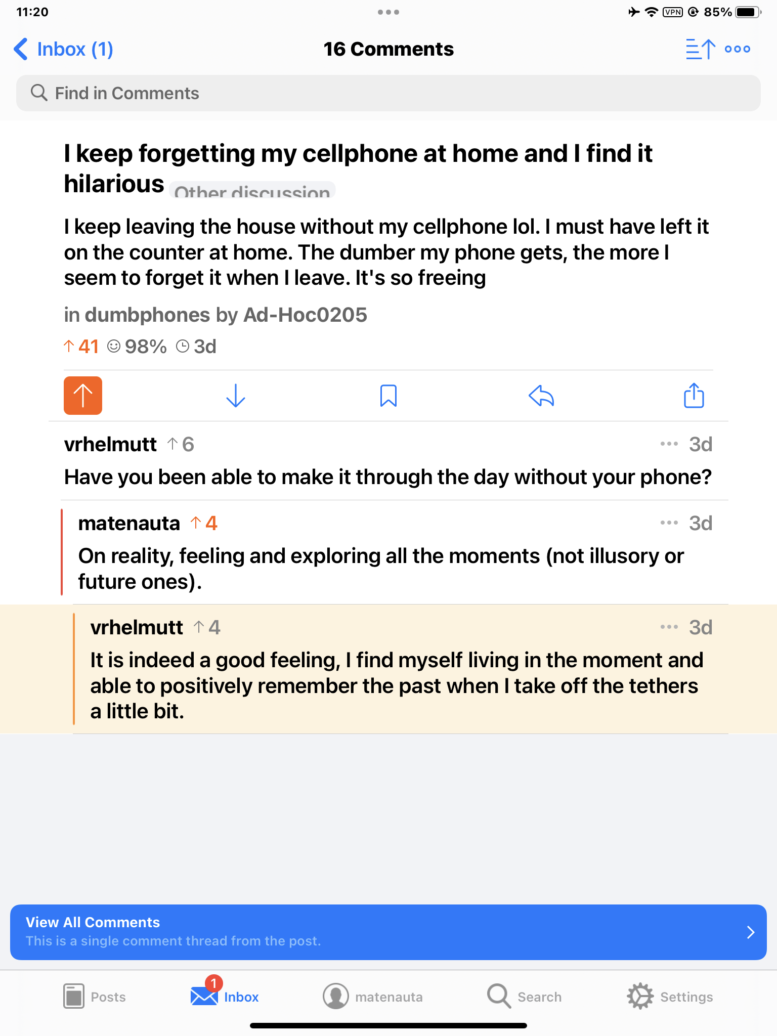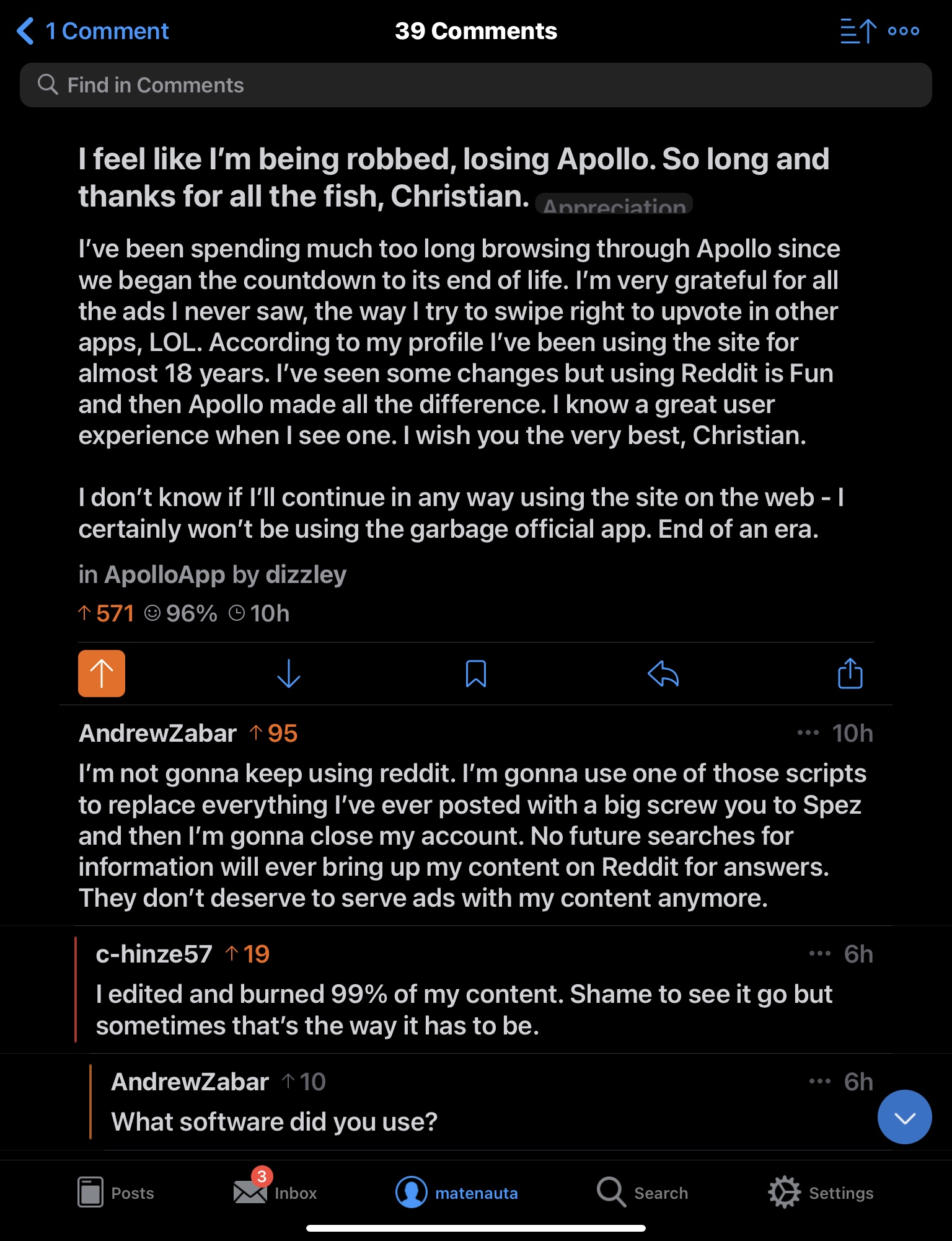 Una de mis últimas capturas en Apollo (sin trackeo gubernamental en la red de Reddit)