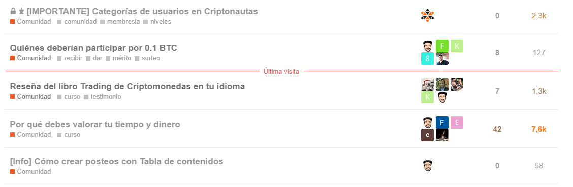 Cualquier tema en el que haya participado activamente, ya sea creándolo, respondiéndolo o leyéndolo durante un período prolongado, se rastreará automáticamente en su nombre y mostrará un indicador de recuento de publicaciones no leídas.
