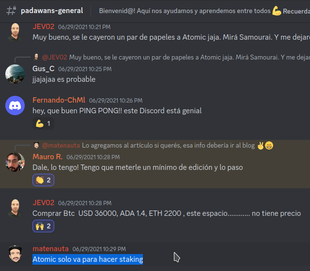 Usamos Atomic Wallet en Crypto Dividendos porque ahí se hacía obligadamente staking) y eso era mejor que usar Binance.