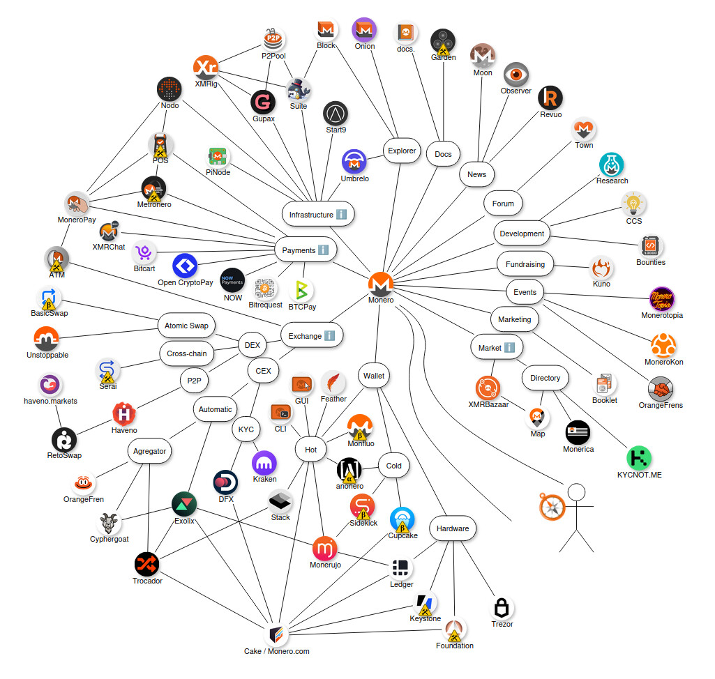 Monero Eco muestra un mapa (actualizado) de los distintos proyectos alrededor de Monero.
