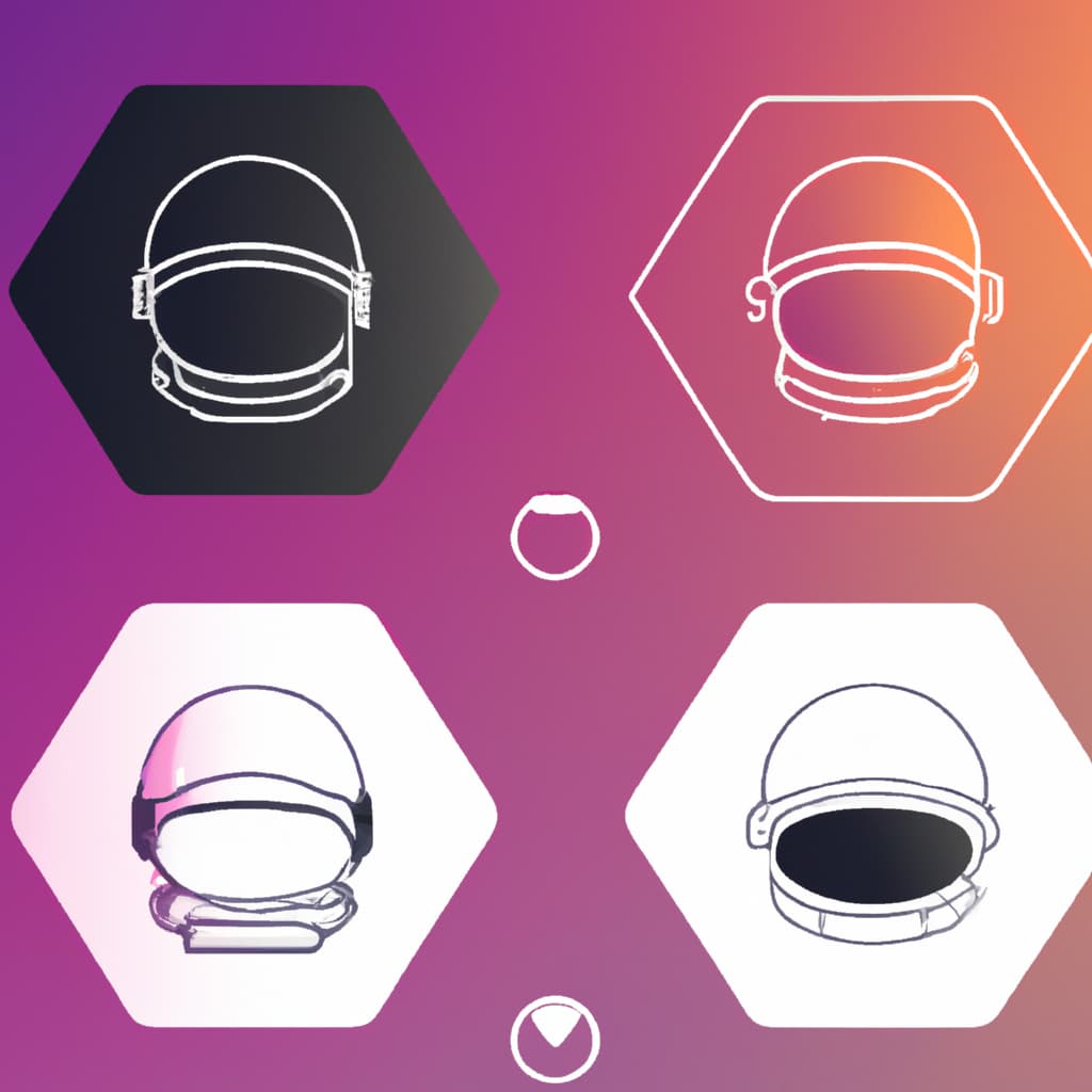 black and white astronaut flat helmet and simple icon illustrated with gradient background with hex #5107ed color and two more harmonic ones