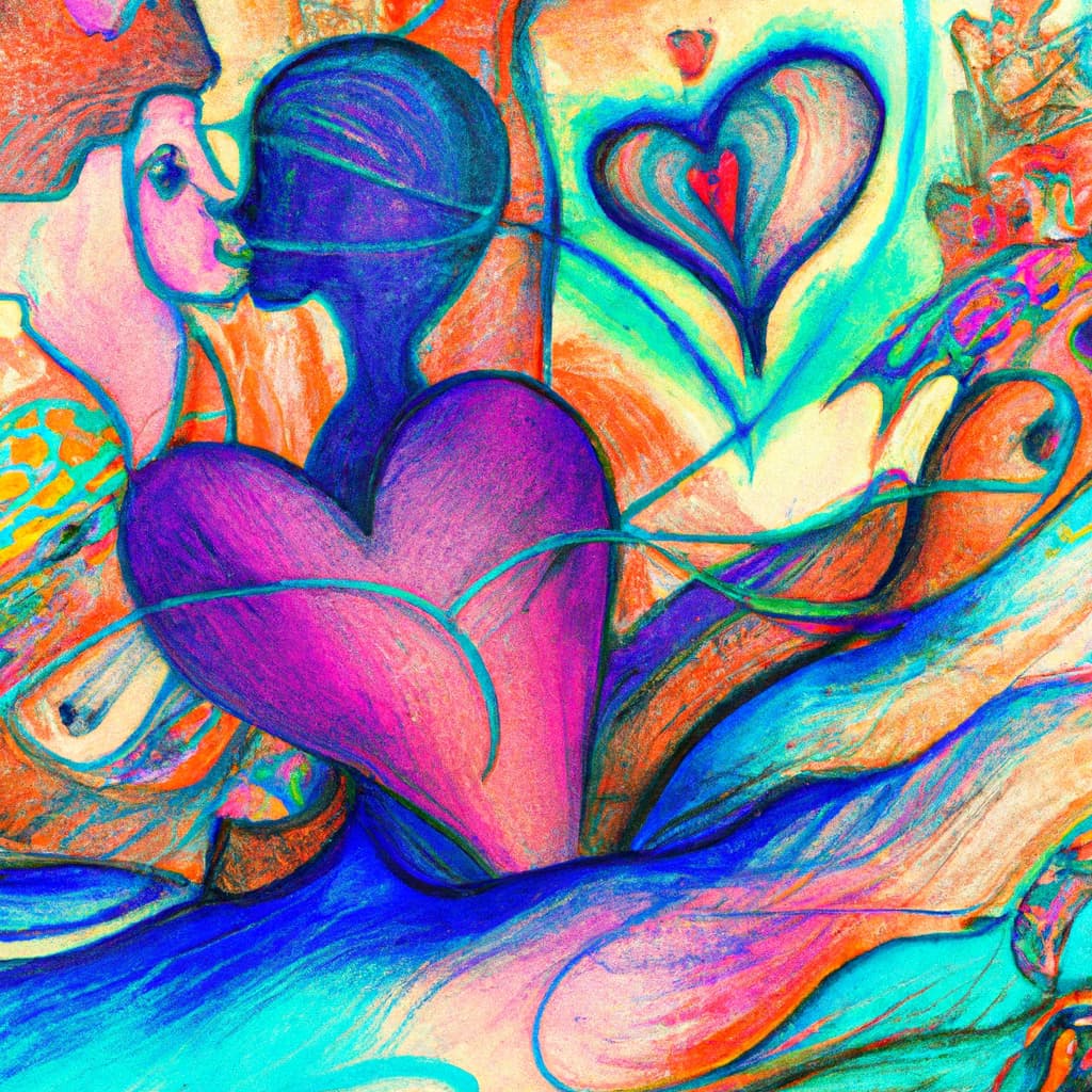 Creative abstract illustration mixing love, courage and disruption. Use old school techniques with vibrant colors