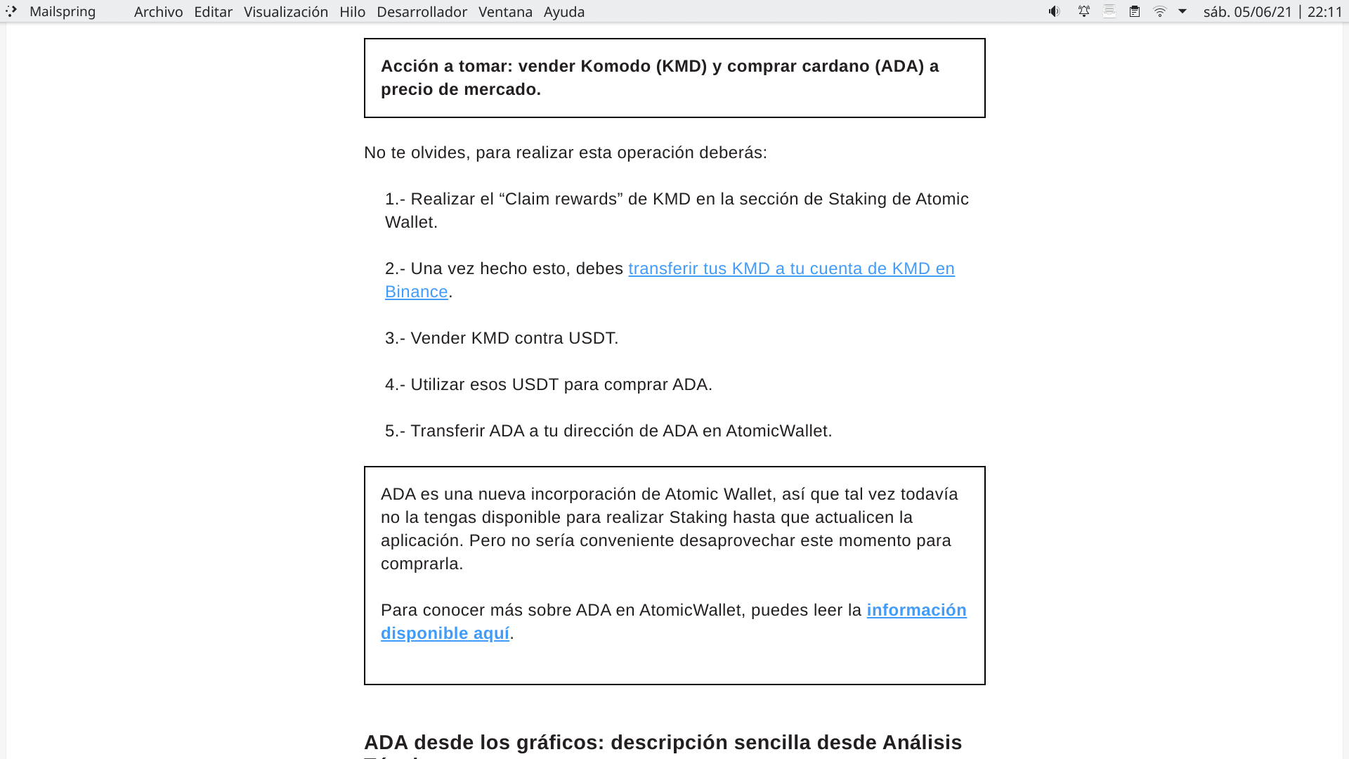 Como podrás apreciar, apenas ingresé propuse migrar el capital de KMD hacia ADA porque no todo lo que brilla es oro.