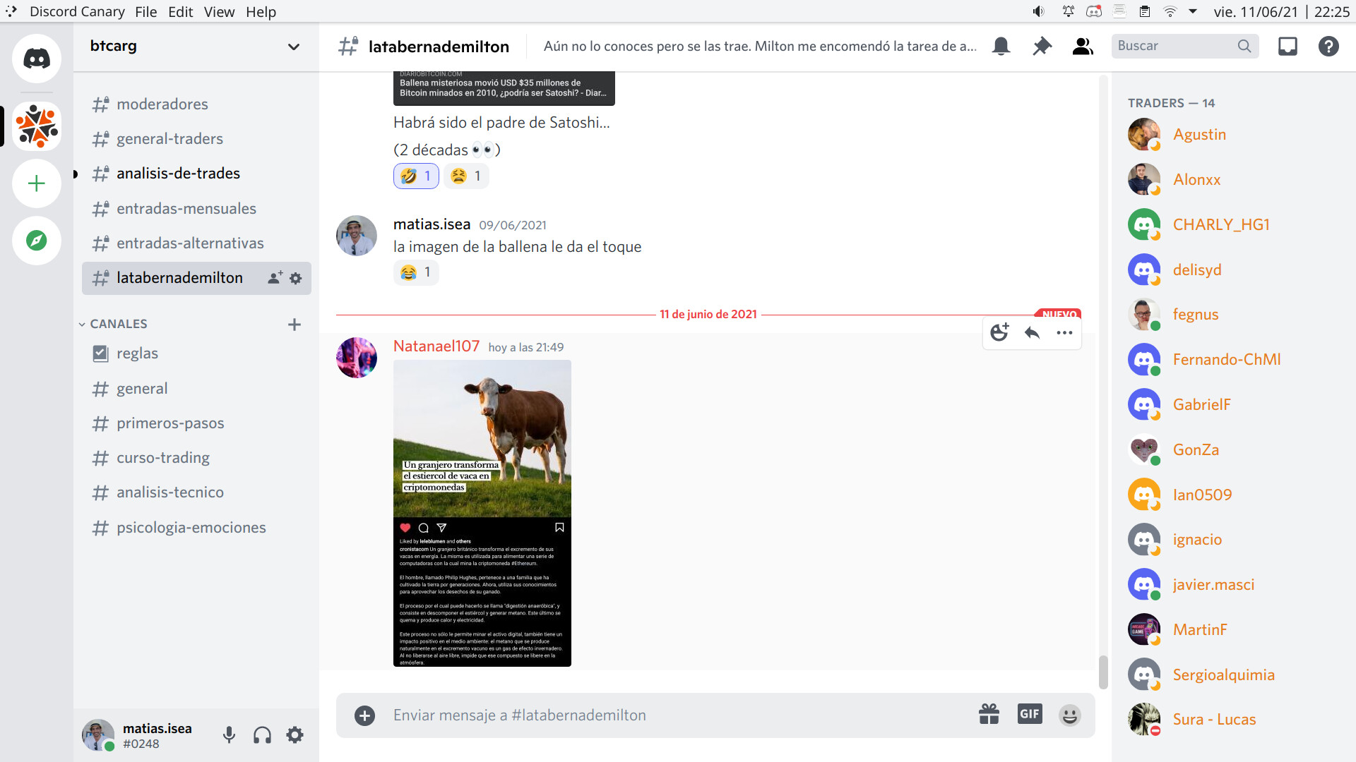 Discord con canales de análisis y trades, donde también nos juntamos en la taberna a hablar de música, noticias y memes