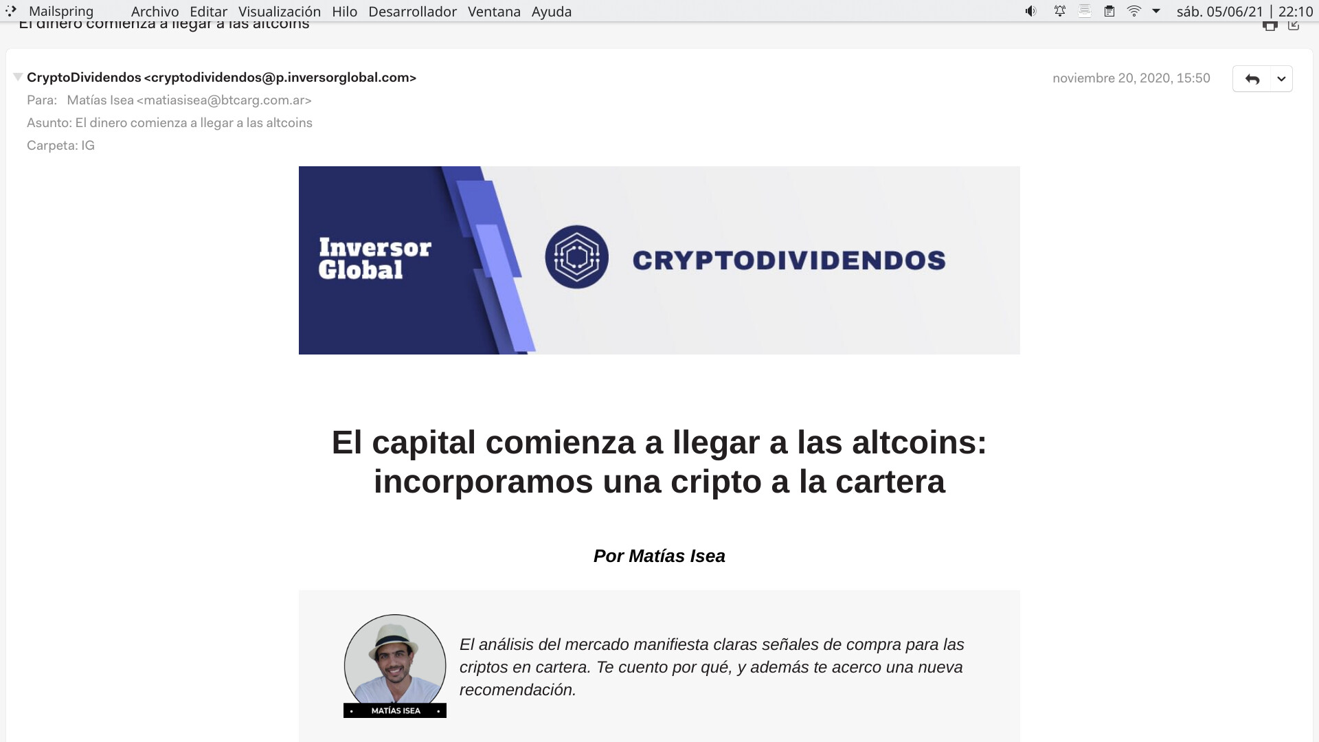 Si aún no te enteraste: decidí no continuar como autor en Inversor Global, para volver a casa y dedicarle más tiempo a lo que realmente vale la pena