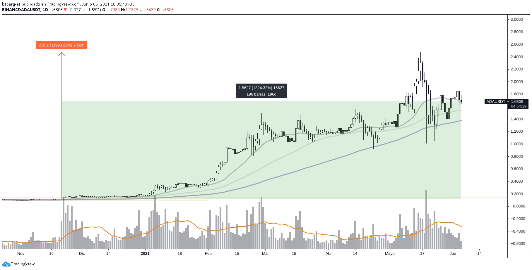 Criptomonedas como ADA, 1324%, luego de un pico de 1993%: