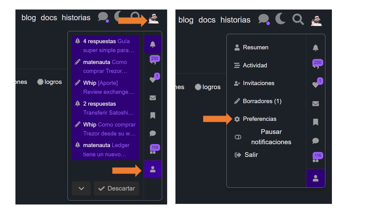 Ir a perfil >> usuario >> Preferencias