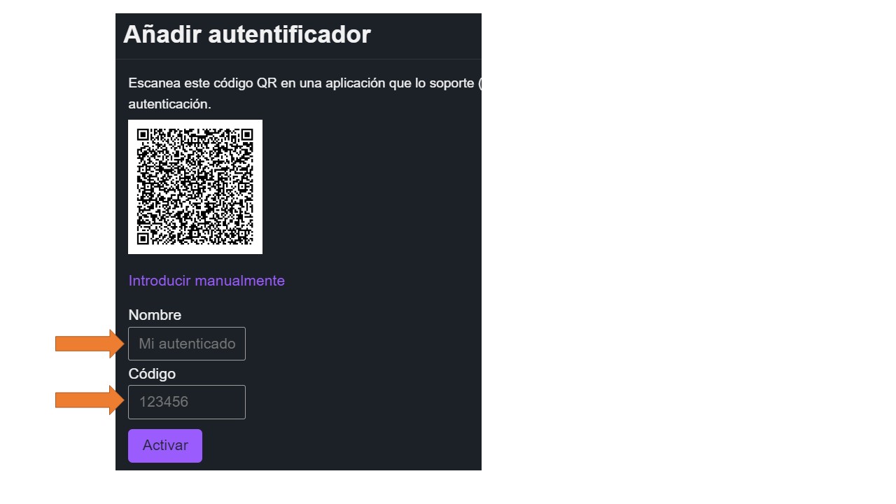 Una vez creada la clave van a aparecer 6 números cambiantes de a 30 segundos o 1 minuto, que tenes que tipearlos en el campo código del formulario anterior y presionar “activar”.