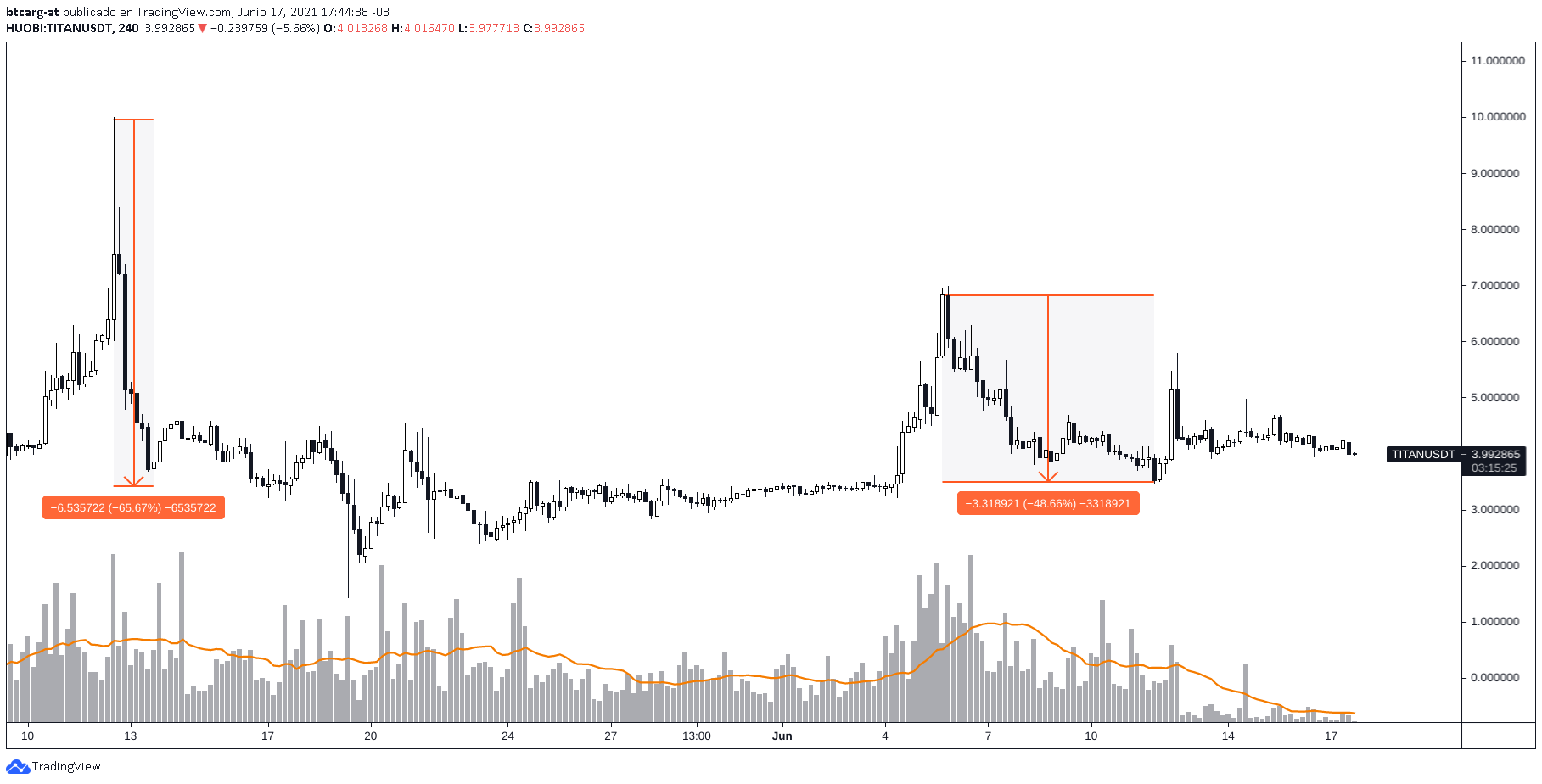 Volatilidad de TITAN (que debía mantener la paridad en IRON, supuesta “stablecoin”)