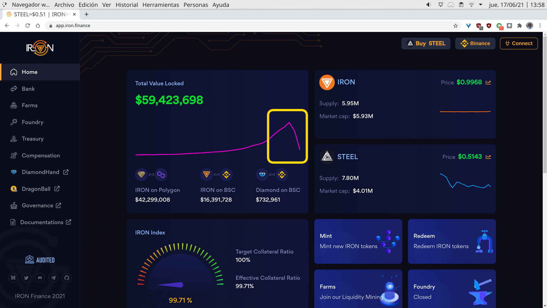 Iron Finance fue (¿es?) un ecosistema de monedas estables (¿estables?) parcialamente colaterizado de múltiples cadenas.