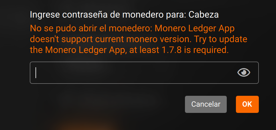 Hola Criptonautas, cree este post debido a que después de la ultima actualización de Monero no puedo entrar en mi Wallet Guide Monero que tengo sincronizada con una Ledger Nano X. Me arroja el siguiente error: