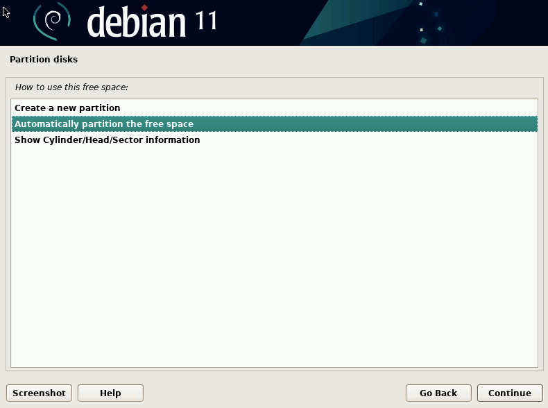 Las dos siguientes ventanas a mí no me aparecieron, supongo que porque creé la partición antes de instalar, pero por si acaso las dejo, en la primera cuidado, elegir la que dice Free Space, en la segunda que particione automáticamente.