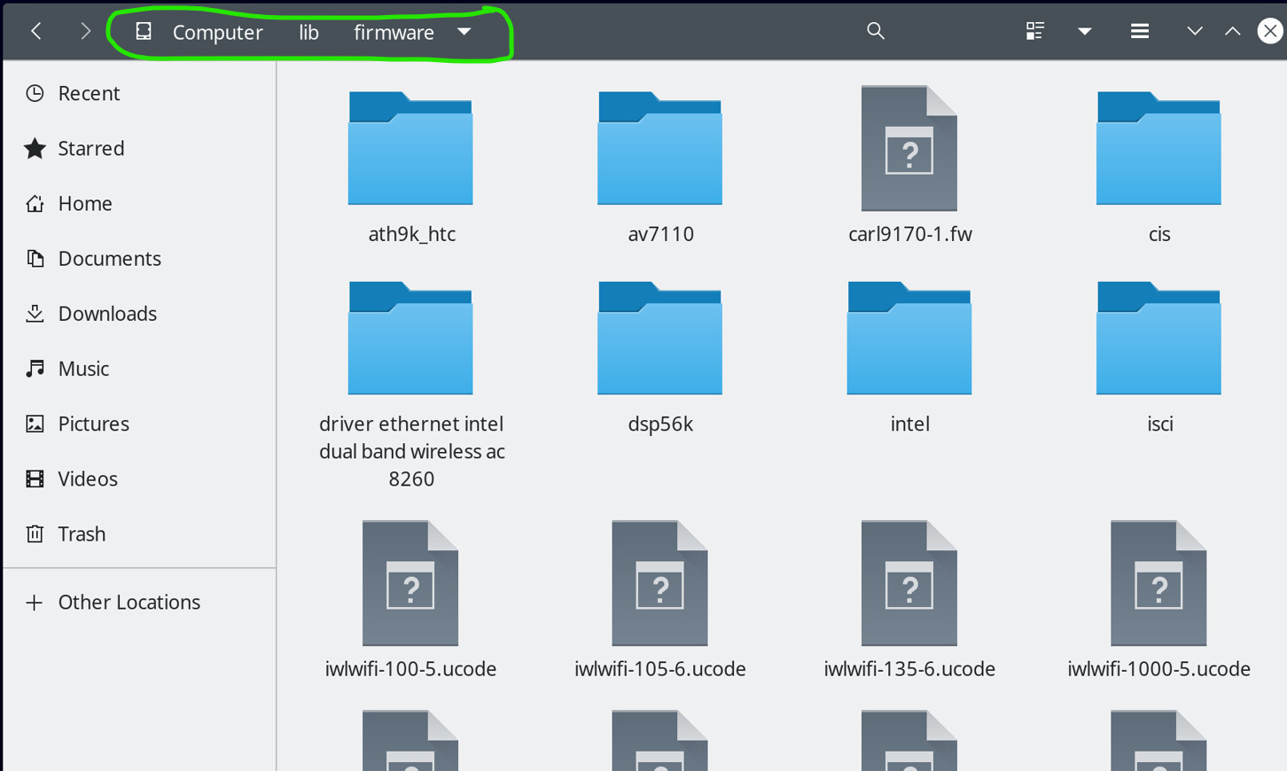 Habría que copiarlo en Computer/Lib/Firmware pero necesitamos habilitar el comando sudo y cambiar los permisos en esa carpeta.