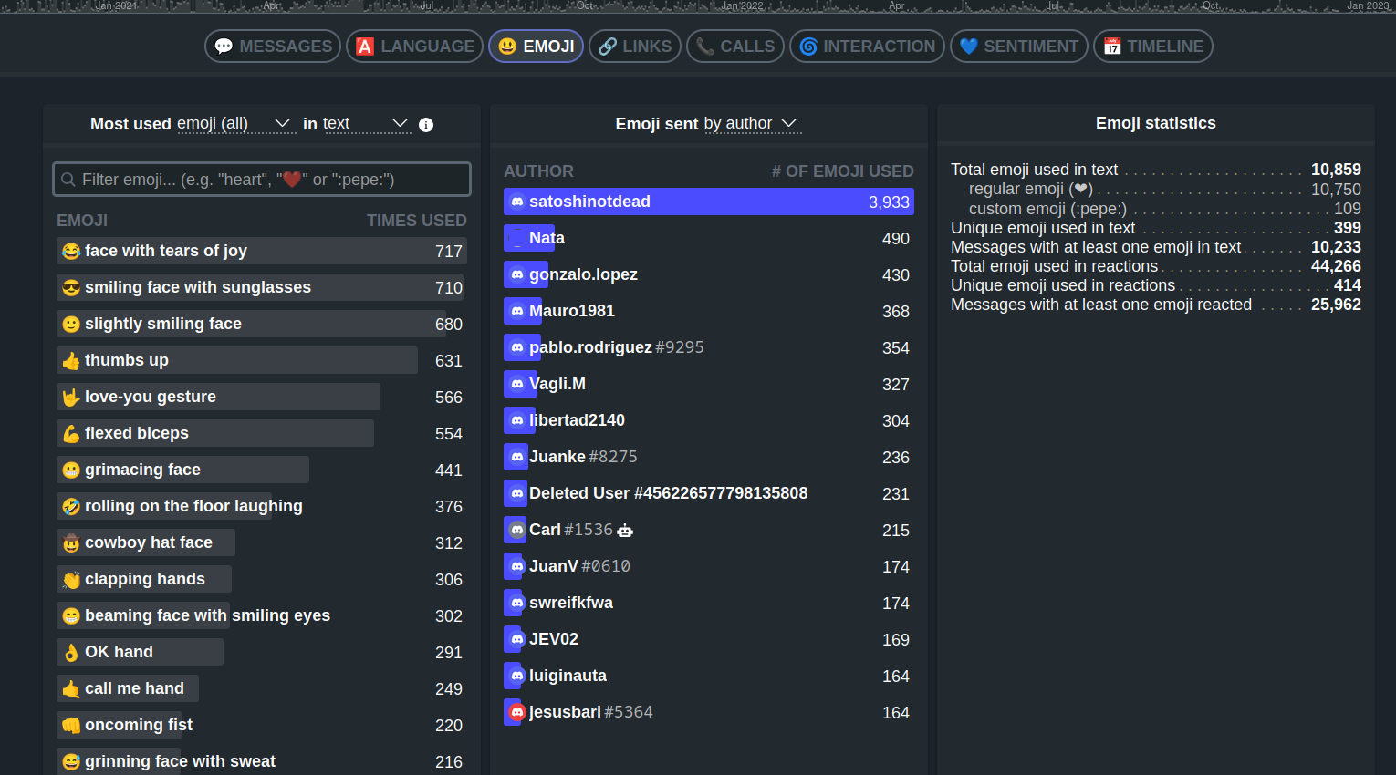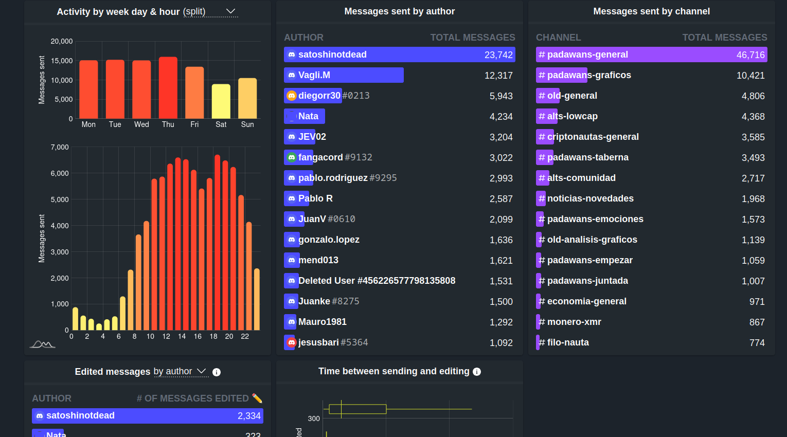 Comparto las estadísticas de nuestro anterior chat en Discord: