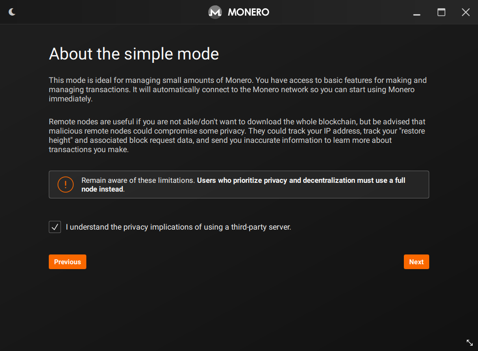Seleccionar el Modo Simple apenas se abre GUI Monero