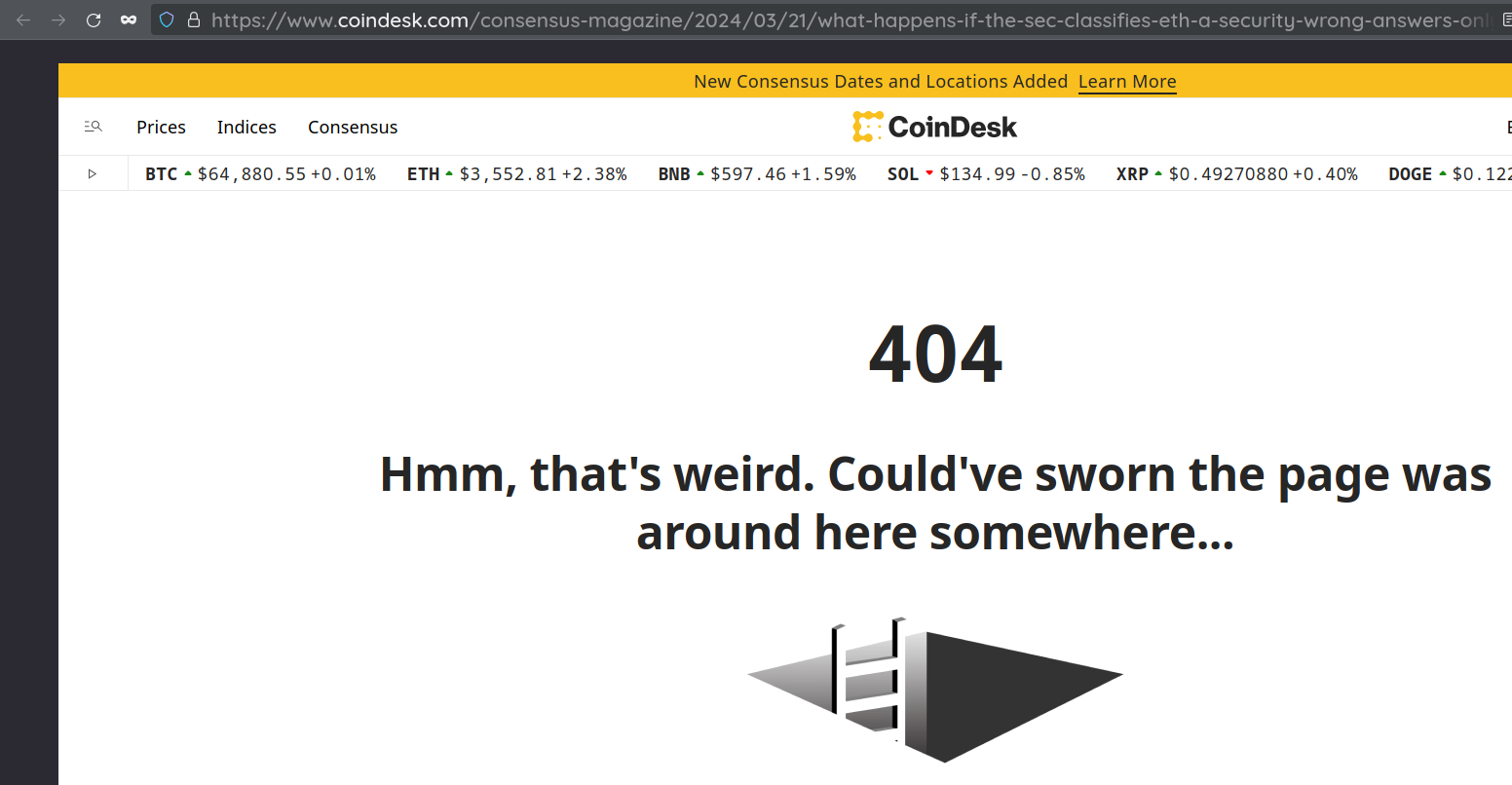 Coindesk eliminó un artículo anteriormente publicado sobre esto: