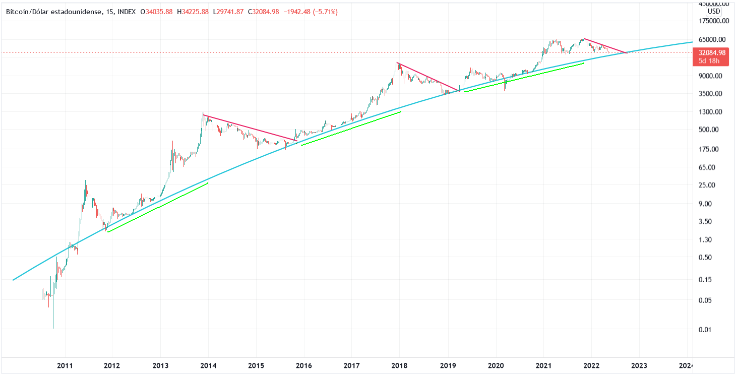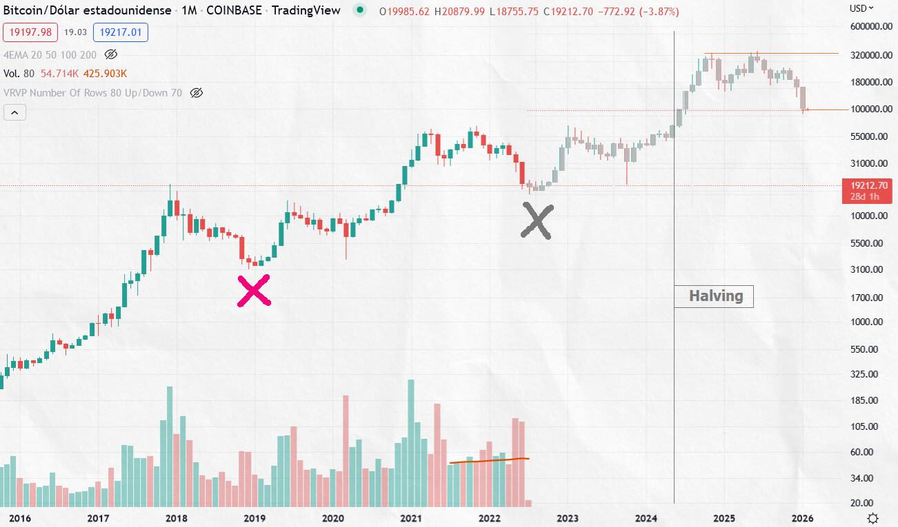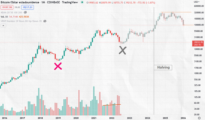 Veo que no coinciden los puntos ¿De repente estamos en un piso lejos del halving y deberíamos estar cerca?