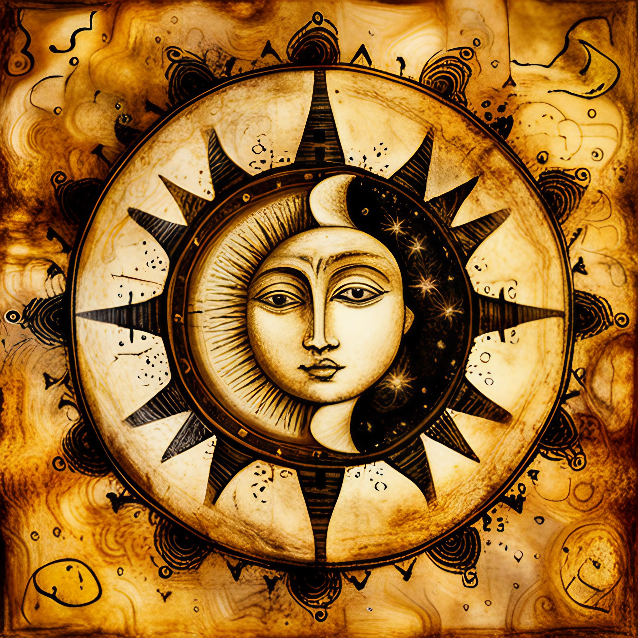 Black background with Symbols related to ancient civilizations and astrology