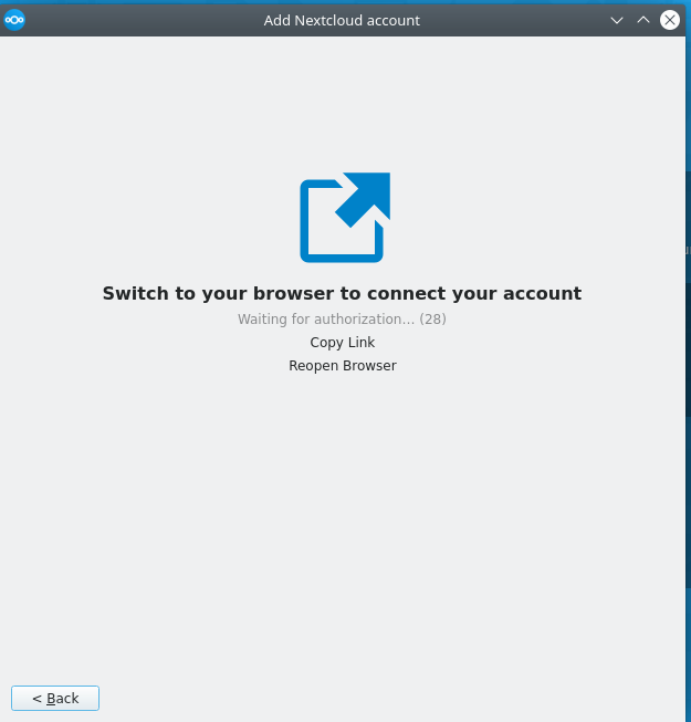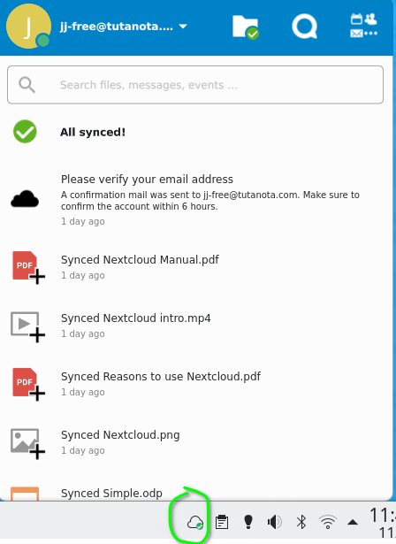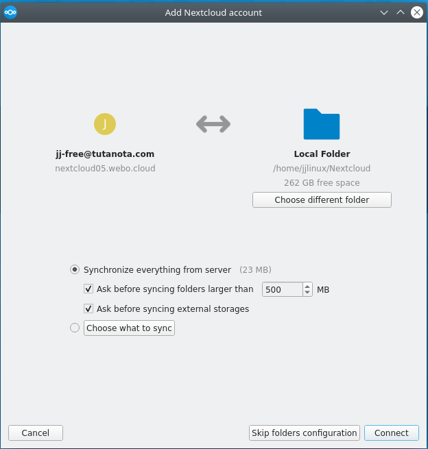Volvemos a Nextcloud, conectamos la cuenta y se crea la carpeta de sincronización.