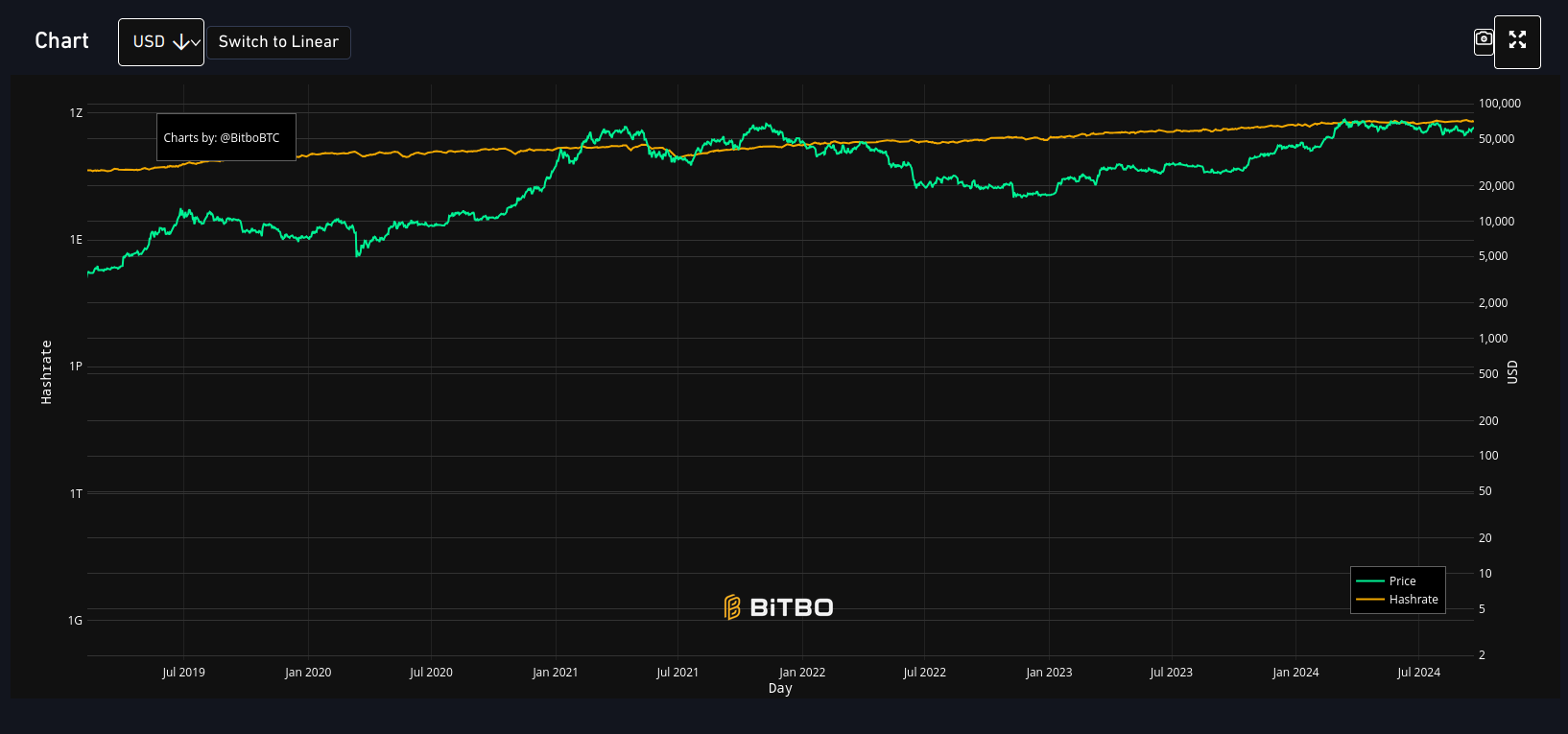 El precio se mantiene mucho más cerrado, como la suba del hashrate y pareciera que ambos se aplanan: